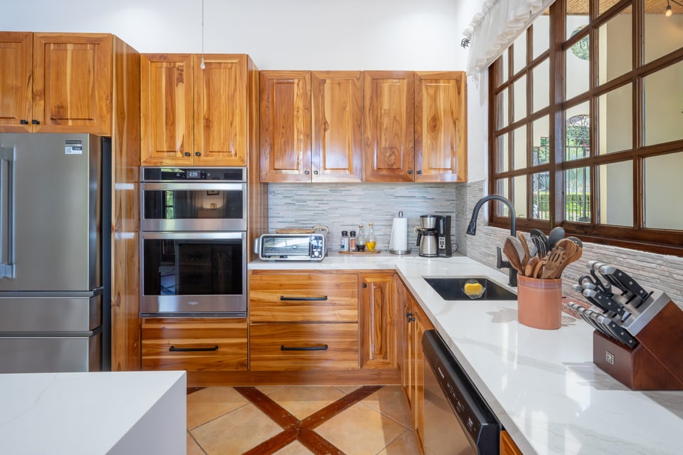 The open-concept kitchen, dining, and living areas flow seamlessly, creating a bright and functional space designed for both everyday living and effortless entertaining. The fully equipped kitchen open into a comfortable living area that extends to an infinity-edge pool with a wet bar, BBQ area and sweeping ocean views—perfect for relaxing or hosting guests.